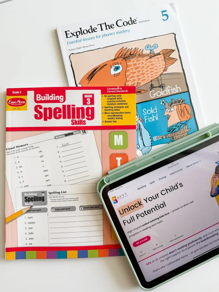 7:25-7:45 Journal writing, Explore the Code, Handwriting, Spelling - all with Mom (~20 mins)