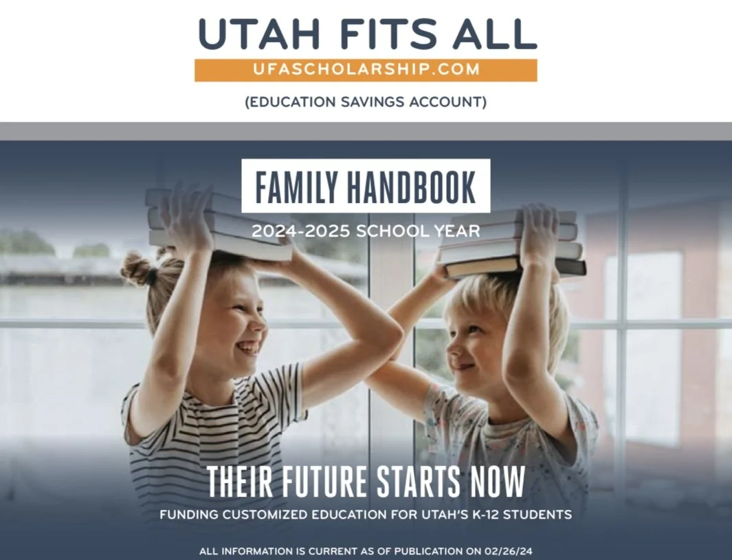 On February 28, 2024 the application portal opened for the Utah Education Fits All Program (UFA). Every time I chat about this new program I get lots of questions so I thought it’d be best just to move questions and some of my personal thoughts over into a blog post. As a disclaimer - I have followed the evolution of this from the bill to law to actual program, but, like so many of us, I am learning right along side you so it’s always possible I’ve misunderstood something a long the way.